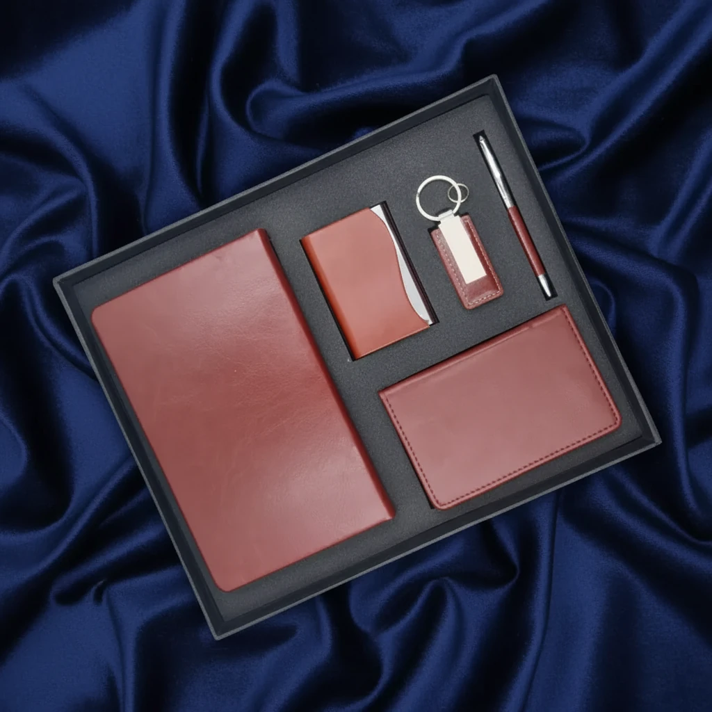 جزییات : هاردباکس _ سررسید _ یادداشت 14*10 _ خودکار چرم و فلز _ جاکلیدی چرم و فلز _ جاکارتی چرم و فلز