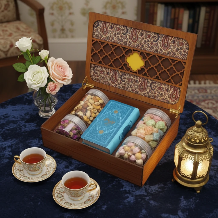 جزییات: پسته | بادام هندی | بادام درختی | فندق (درجه یک و اعلا ) + دیوان حافظ