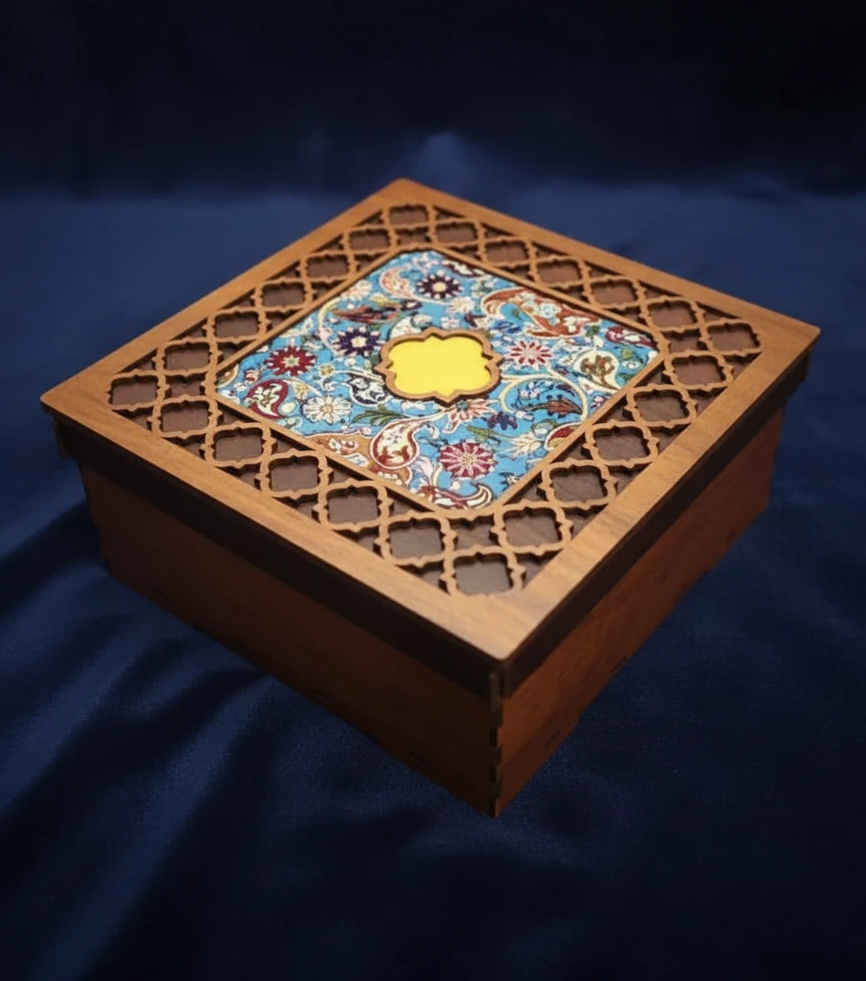 جنس جعبه : جنس ام‌دی‌اف با درب دولایه و پارچه ترمه