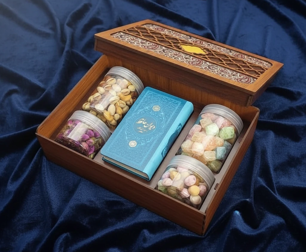 آجیل 4مغز | لوکوم | شکرپنیر | گل محمدی (درجه یک و اعلا ) + دیوان حافظ
