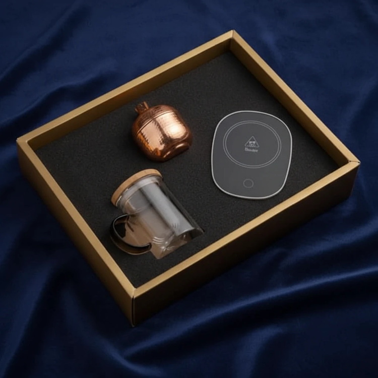 جزییات: ماگ پیرکس- سینی هیتر- قندان مسی- اجیل _ باکس
