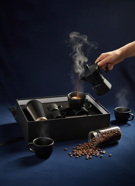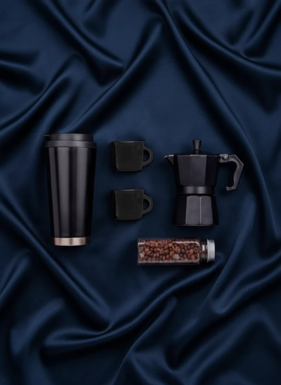 موکاپ + دوتا فنجان + تراول ماگ + سیلو قهوه + هاردباکس