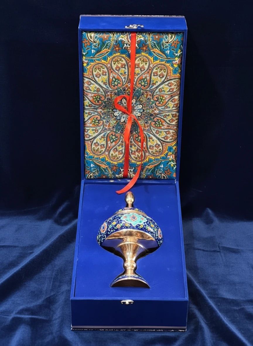 جزئیات : باکس هدیه لوکس مخمل _ شکلات خوری مس و پرداز _ ترمه