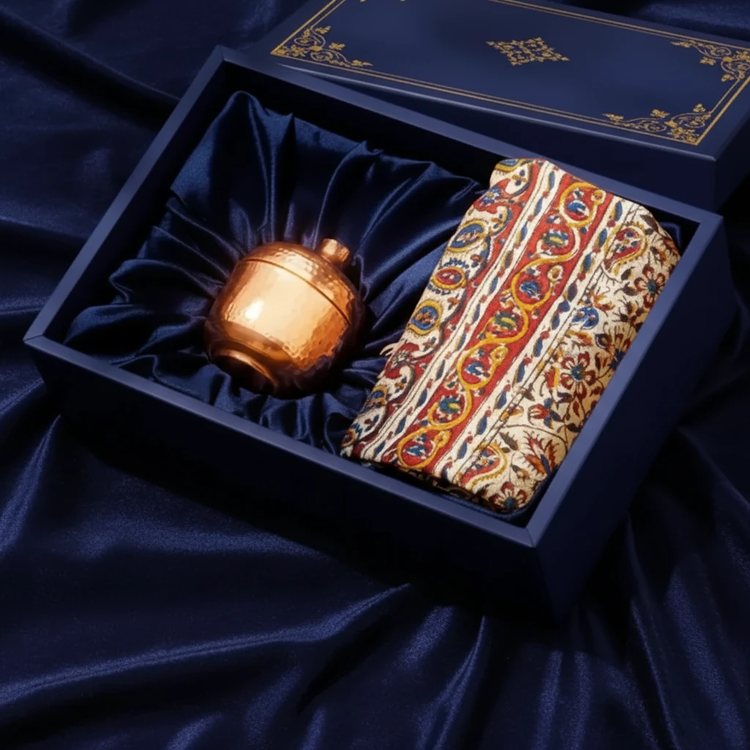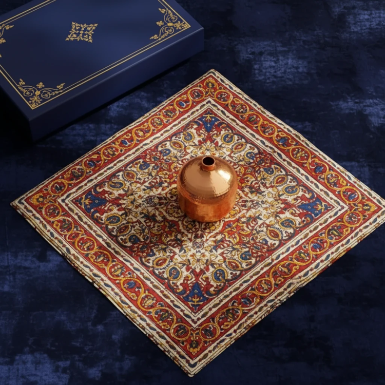 سفره قلمکاری ( ۱ متر )_قندان انار مسی بزرگ _ باکس لوکس